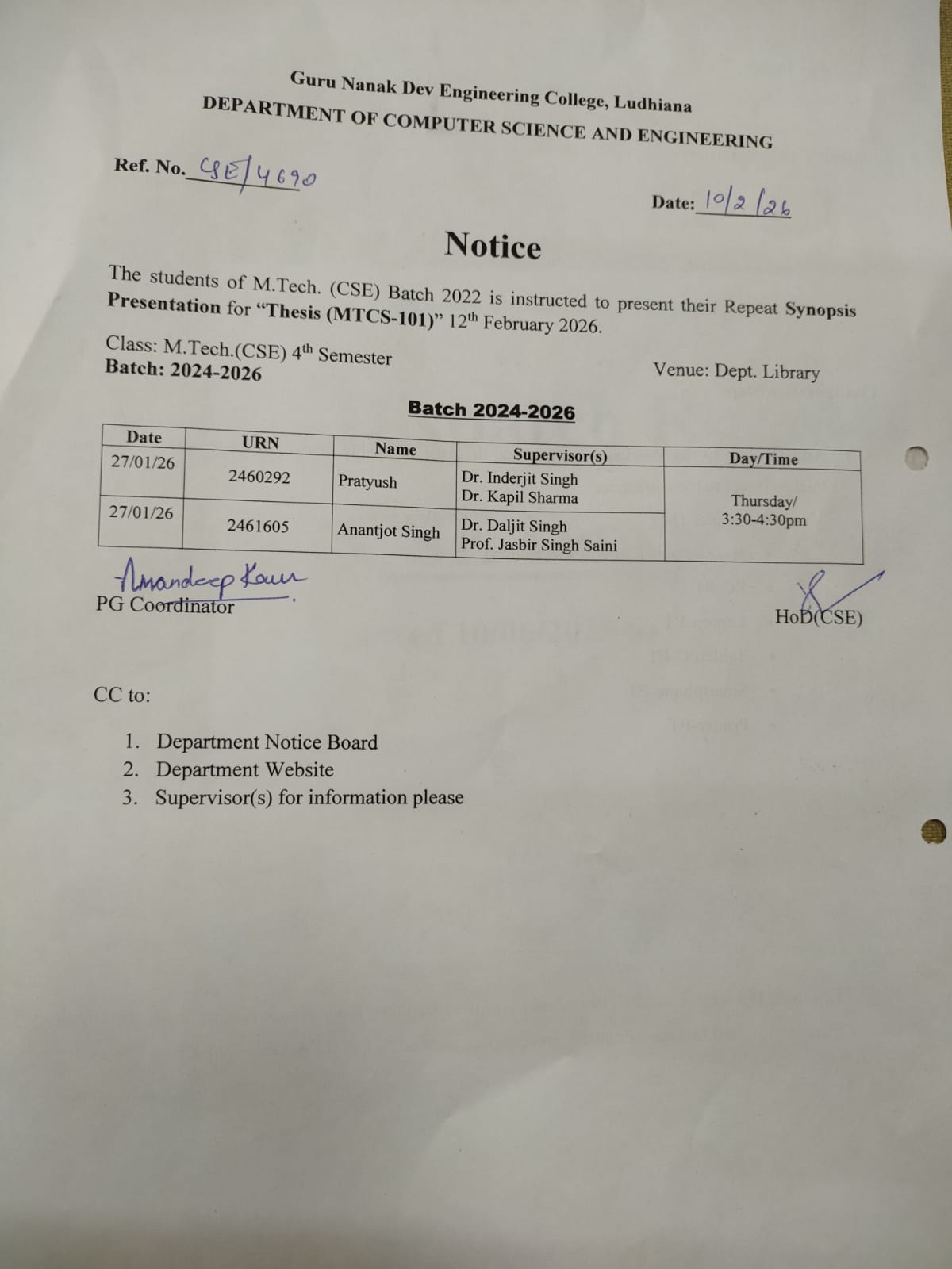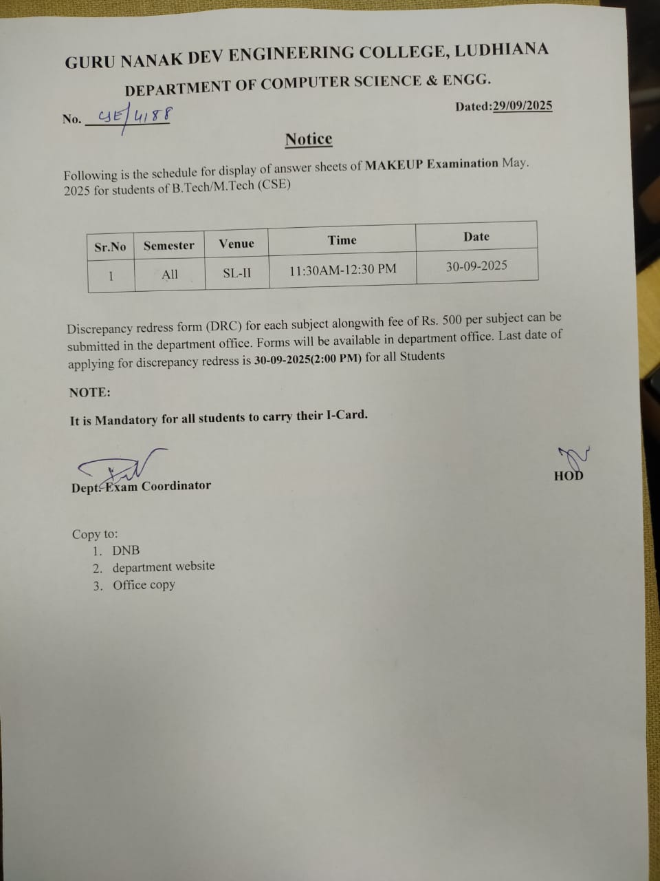 Department of Computer Science and Engineering was established in year 1997. Department is offering B.Tech. and M.Tech. programs in Computer Science and Engineering. Laboratories of the department are equipped with state of the art infrastructure to cater course work and research activities. A Good number of books is available in departmental library for prompt access to students and faculty members. Under academic autonomy, study schemes of the offered programs are updated regularly focusing outcome based education, to make students employable as per national and international requirements. Graduates of the department are serving around the globe in eminent companies, academic, as well as in public sector. They are bringing laurel to the department by excelling in fields of their work. Every year a good number of students are clearing different competitive exams.